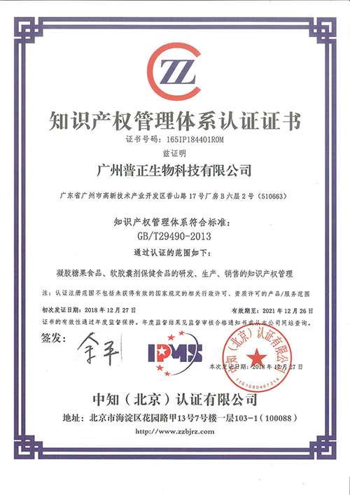 2018年,酵母富鋅凝膠糖果等十二款產(chǎn)品被認(rèn)定為高新技術(shù)產(chǎn)品;榮獲CBME“服務(wù)十年獎(jiǎng)”;12月27日通過(guò)知識(shí)產(chǎn)權(quán)管理體系認(rèn)證;