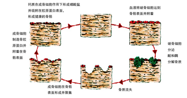 這些步驟緊密相連(骨骼的代謝轉(zhuǎn)換或再塑),伴隨人們的一生。