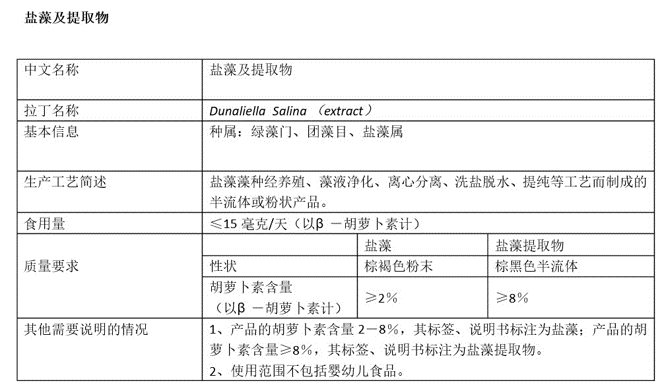 優(yōu)選鹽藻提取物作為β-胡蘿卜素來(lái)源。