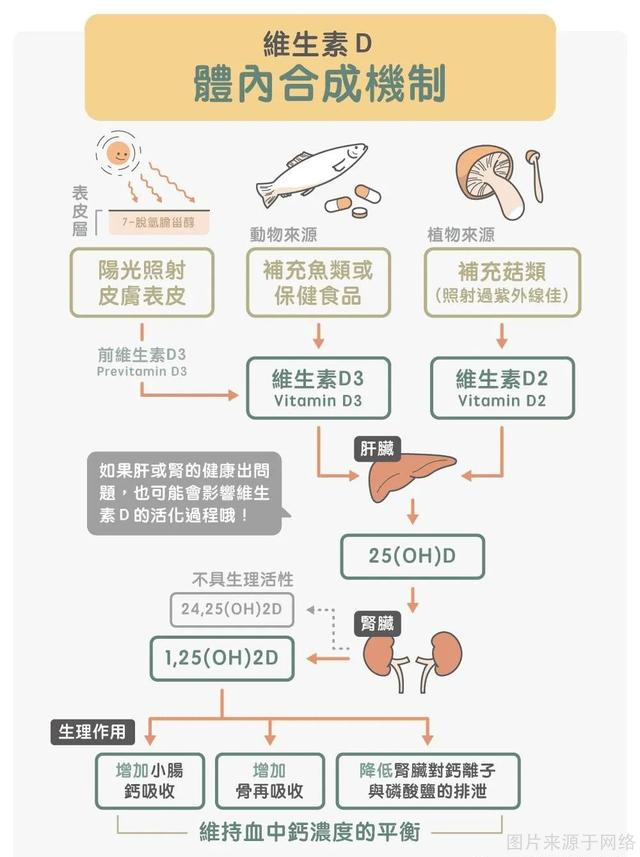 它們都需在肝臟中轉(zhuǎn)化成骨化二醇,再于腎臟中轉(zhuǎn)化成骨化三醇,之后才可發(fā)揮生物效應。