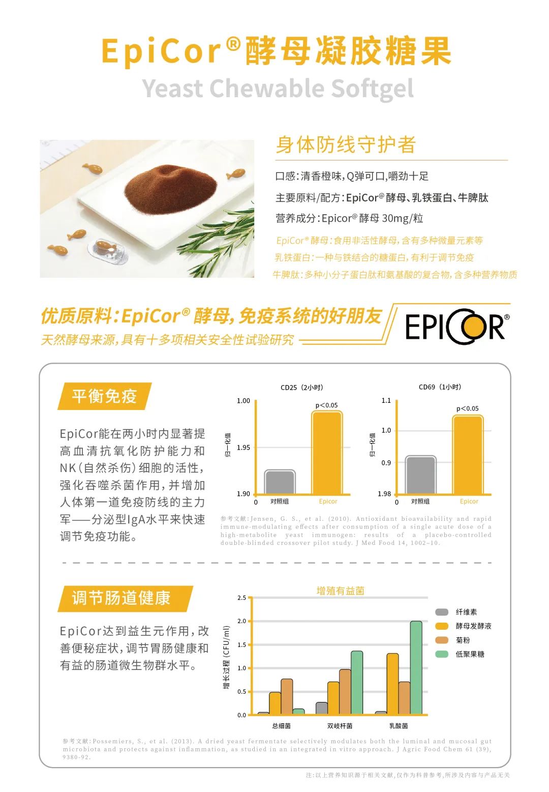 目前,EPICOR已獲多項(xiàng)臨床試驗(yàn)支持。EPICOR非活性酵母可以在兩個(gè)小時(shí)內(nèi),顯著增加自然殺傷細(xì)胞活性,幫助機(jī)體免疫系統(tǒng)快速有效識(shí)別靶細(xì)胞,殺傷介質(zhì)。